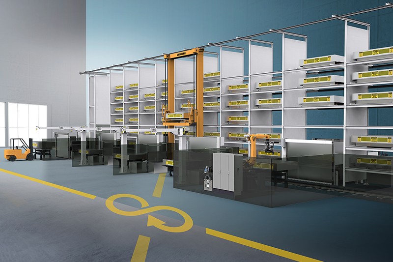 The pallet handling system PHS connects automation cells, machines and manual workstations into a seamless system. It enables a free flow of materials, responds flexibly to variants and quantities, and handles transport, loading, storing and the entire intralogistics process. The battery discharge technology guarantees safety during the discharge and deactivation of battery systems. The extracted energy is fed back into the grid and can be used to power the plant. Automated stations such as the LHDismantle unscrewing technology, machining centres for milling processes or laser cutting systems can be flexibly integrated into the PHS. Additional manual workstations enable flexible and safe further processing of batteries after discharge.