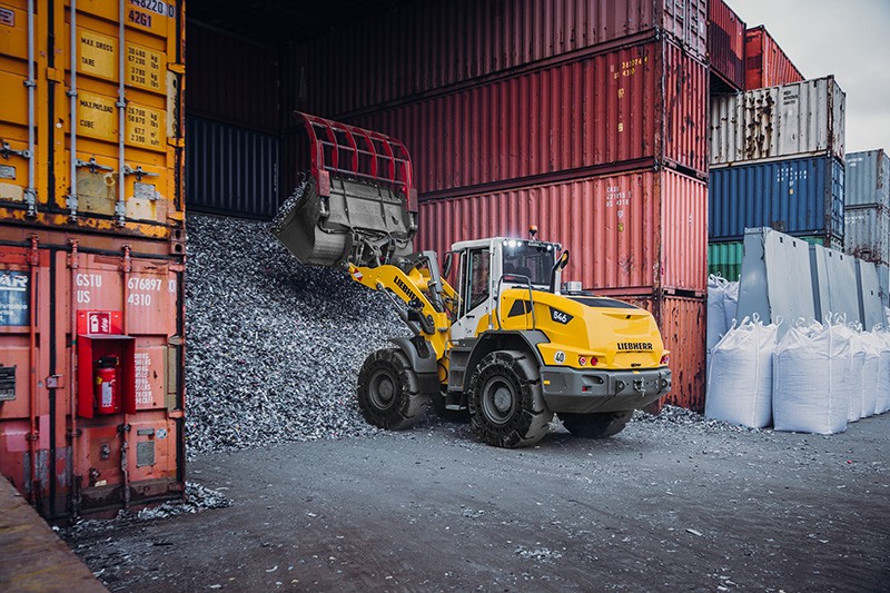 Liebherr presents the L 546 model from its range of medium-sized wheel loaders. This wheel loader impresses with a powerful lifting frame featuring z-bar kinematics. This results in fast cycle times and dynamic working movements during material handling – even with heavy attachments such as high-tipping buckets in recycling. For applications that regularly require different attachments, there is a visibility-optimised quick coupler as well as the fully automatic LIKUFIX quick coupling system. The L 546, which can be seen at the exhibition, is equipped with intelligent assistance systems. These include active pedestrian detection with brake assist and the Skyview camera system. These systems detect potential hazards at an early stage and warn operators via visual and audible signals.
