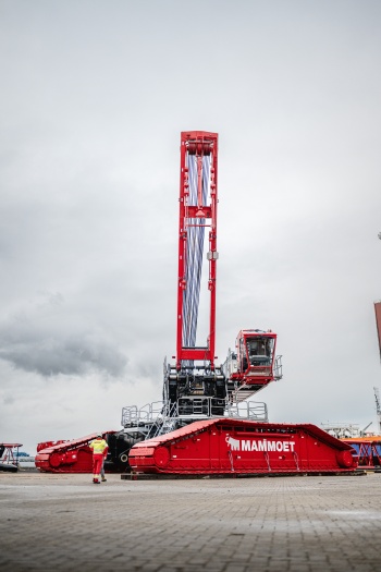 The LR11350 has a maximum load capacity of 1,350t and a hoist height of 220 meters. It will join ten other machines that Mammoet has in its fleet with a capacity of 1,000 to 1,350t.